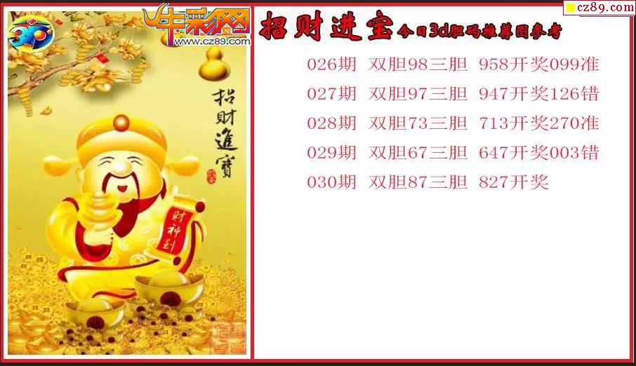 首页 > 福彩3D图谜 > 26年030期3d 招财进宝今日胆码推荐图参考