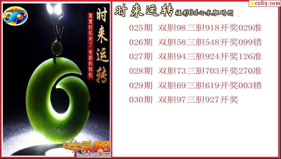 > 26年030期3d 时来运转心水胆码图