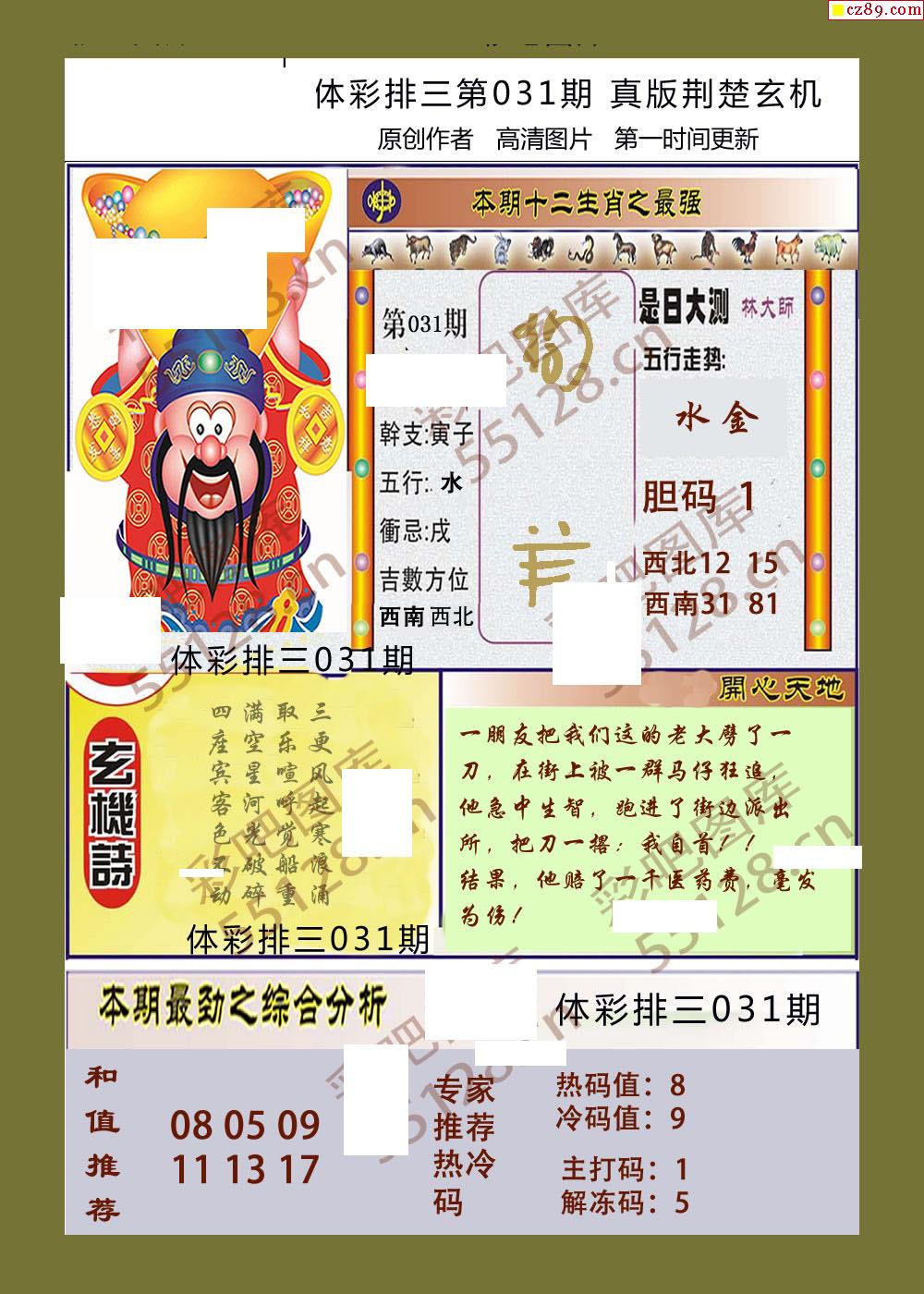 荆楚玄机031期体彩p3图谜