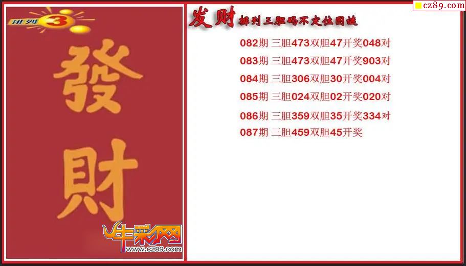 首页 > 排列3图谜 > 2026087期P3发财胆码不定位图谜